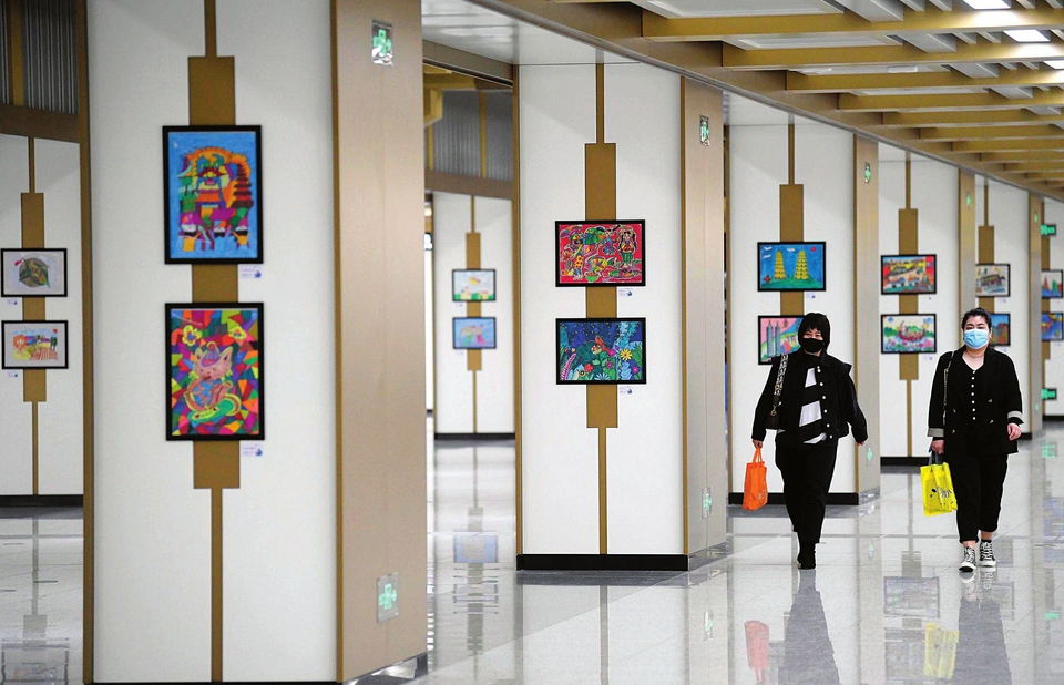 3月31日,在太原地铁大南门站站厅,“这个星球不孤独”主题活动展出了自闭症孩子们创作的近百幅美术作品,让人们能够透过作品更多地了解和关注自闭症群体的生活状态。(图2)